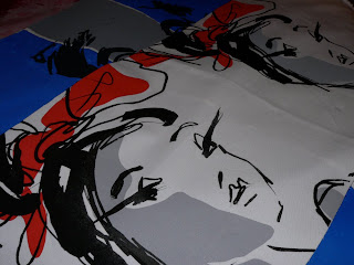 The pic on the left is the stack of new images that I will be printing today onto cloth, then they will be turned into beautiful products the rest of this week. The pic on the right is an image of a print that I did the last go around, this week I'll turn that into a pillow.