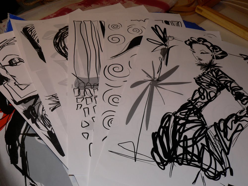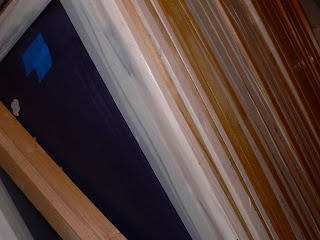 Here are pics of the stack of prepped and cut fabric that I will be printing onto with my newly burned screens that I did over the weekend. Can't you smell the ink already?