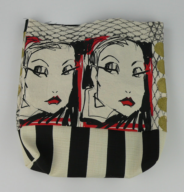 You might notice the printed fabrics in these bags that were in yesterdays blog post of the recent collage type prints that I have been working on. Well, they have begun to be incorporated into my new bag designs that I worked on all day yesterday. They're in progress right now, I have them already up to the point of inserting their zips. The handles and lining are also already to go, but those zips need to go in before I can move forward. The plan is to line up a bunch of bags then go to the store this weekend to purchase the coordinating zip color. So much fun, loving it! I have fabric laid out on the design table ready to be cut into 7 new bags for their very own fabulousness.