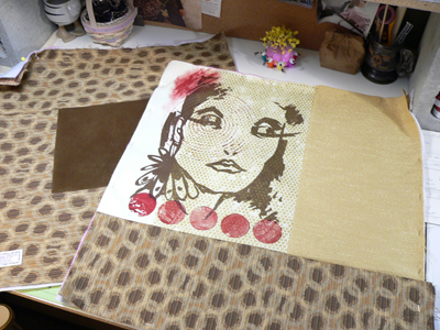 Well after a busy week of jury duty I am back in the studio/office with a project on the design table that I am working on for a client of mine.  This is a jumbo 24"x24" custom design pillow that is about mid way through the process.  Her panels have been cut and sewn together... front and back... and is ready for the zipper to be inserted.  Then onto sewing the front and back panels together, making her insert pillow, then this lovely lady will be done and ready to be sent to her new wonderful home.