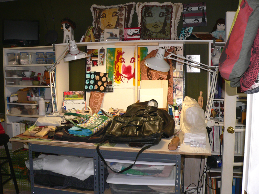 Also in the last week or so I changed around my studio some more before the arrival of Seiko to get a better work flow going. The table is loaded with leather goods... like bags and jackets... that I found around the house to rip apart to use in my products.